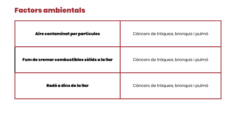 Entre aquests factors de risc es troben els factors ambientals, laborals, conductuals i metabòlics, com, per exemple, la contaminació, l’exposició a productes químics a la feina, el consum de tabac i l’obesitat.