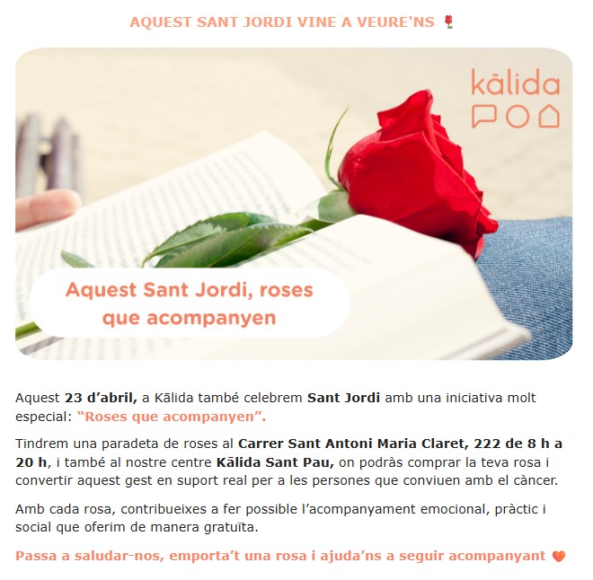 Les entitats de la FECEC Junts contra el Càncer organitzen activitats solidàries per a la Diada de Sant Jordi de 2026. Et deixem el llistat a continuació.