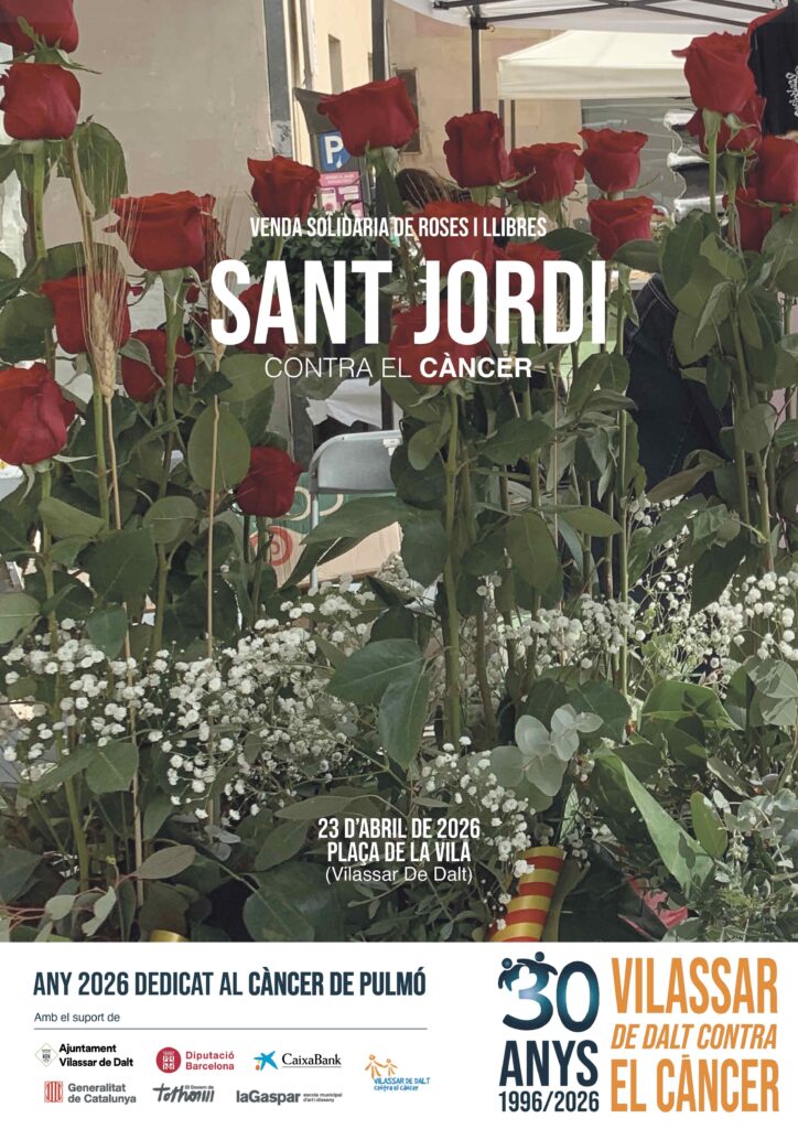 El proper 23 d’abril, vine a la parada solidària de Vilassar de Dalt contra el càncer, a la plaça de la Vila. Hi trobaràs roses i llibres per regalar… o regalar-te, mentre col·labores amb una causa que ens toca a tots i totes.