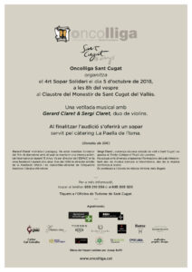 Oncolliga a Sant Cugat organitza el 4t Sopar Solidari el dia 5 d’octubre de 2018. [...]