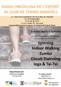 Dissabte, 25 de novembre, Oncolliga celebra la Diada de l’esport al Club de Tennis Sabadell. [...]