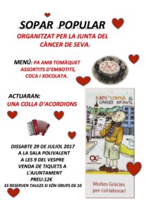 Tot a punt per al sopar solidari a favor d’Osona contra el càncer