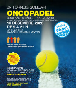 Dissabte 10 de desembre se celebra el 2n Torneig Solidari Oncopàdel al Club Nàutic Pàdel [...]