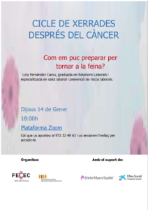 Cicle de xerrades ‘Després del càncer: Com em puc preparar per tornar a la feina?’