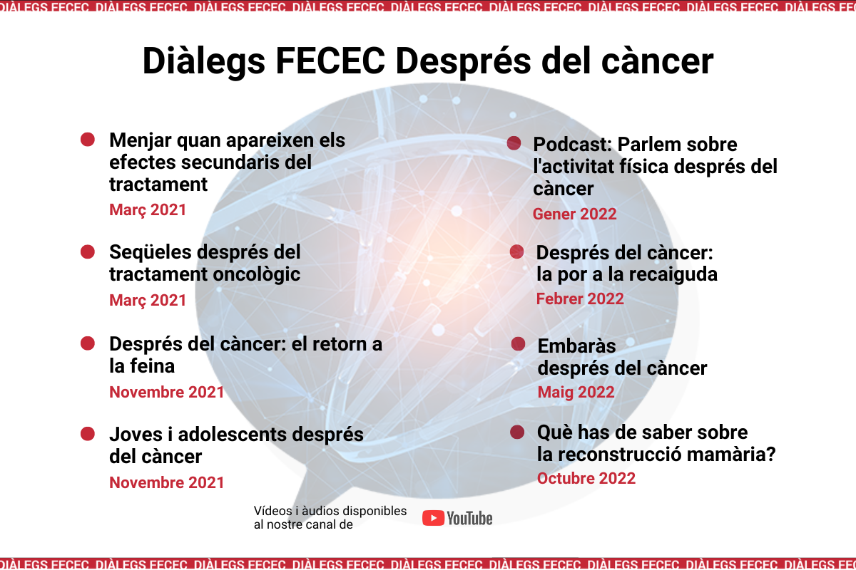 FECEC, Junts contra el Càncer organises public educational talks in different formats. They are intended for the general public, patients and family members of people living with cancer. Public education talks address different aspects of the disease, from prevention, to diagnosis, treatment and life after cancer.