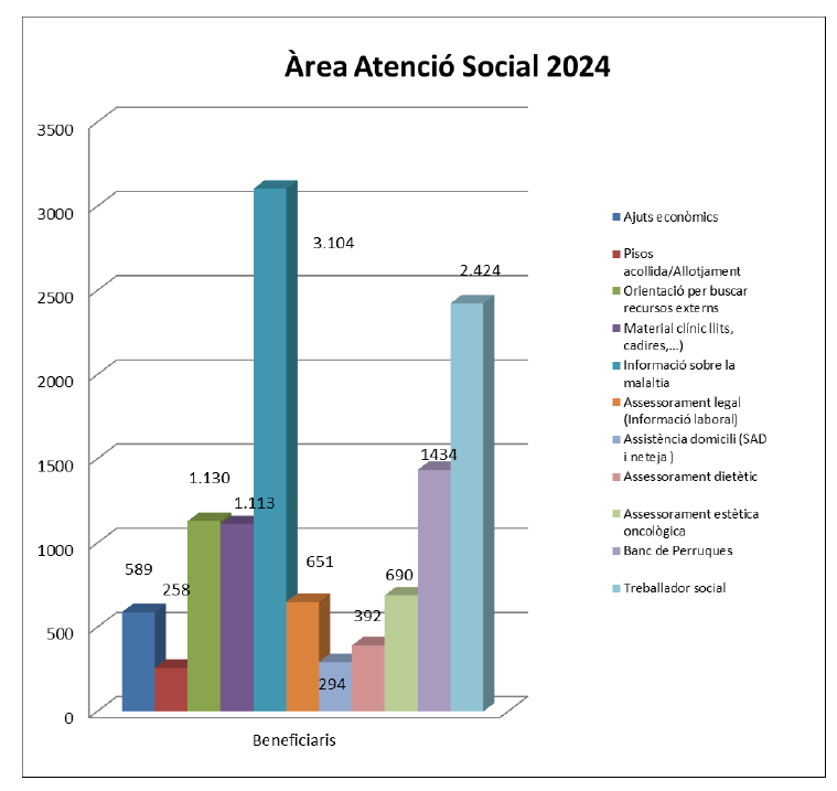 Durant el 2024 sols els serveis  d’ajuts econòmics, pisos acollida i l’orientació de recursos externs han tingut més demanda. S’han mantingut estables el Servei d’atenció a domicili i el banc de perruques. En canvi hi ha menys beneficiaris en la resta de serveis, ja sigui perquè hi ha entitats que han deixat d’oferir el servei, ja sigui perquè la disminució s’ha concentrat en una o dues entitats.