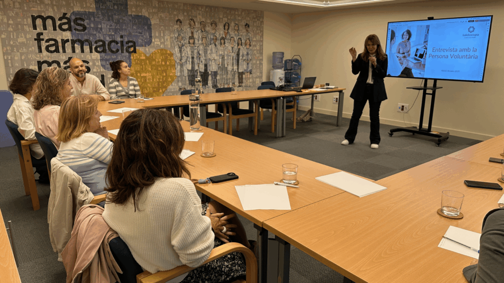 Mari Martínez, psicòloga i especialista en Neurocoaching i Lideratge de Kalidoscòpia, va compartir amb les persones assistents quines són les bases d’una entrevista efectiva en el context del voluntariat; com establir un vincle de confiança des del primer contacte; a aprendre a detectar habilitats, motivacions i valors de la persona voluntària; a conèixer; i a aplicar tècniques d’entrevista estructurada com el mètode STAR. A més, van desenvolupar criteris per valorar l’encaix entre voluntari/a i entitat i van posar en pràctica situacions reals mitjançant role-playings per integrar tot l’aprenentatge.
